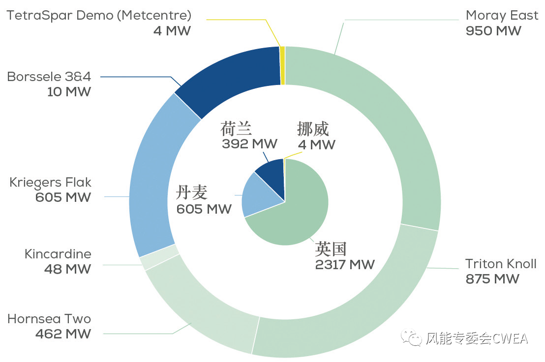 图1 2021年欧洲部分或全部投运的海上风电项目