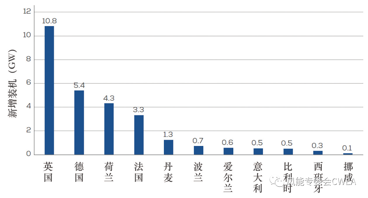 2022―2026年,欧洲将分别新增海上风电装机3.5GW、4.4GW、4.1GW、5.4GW、10.4GW。其中,英国海上风电新增装机容量合计10.8GW。