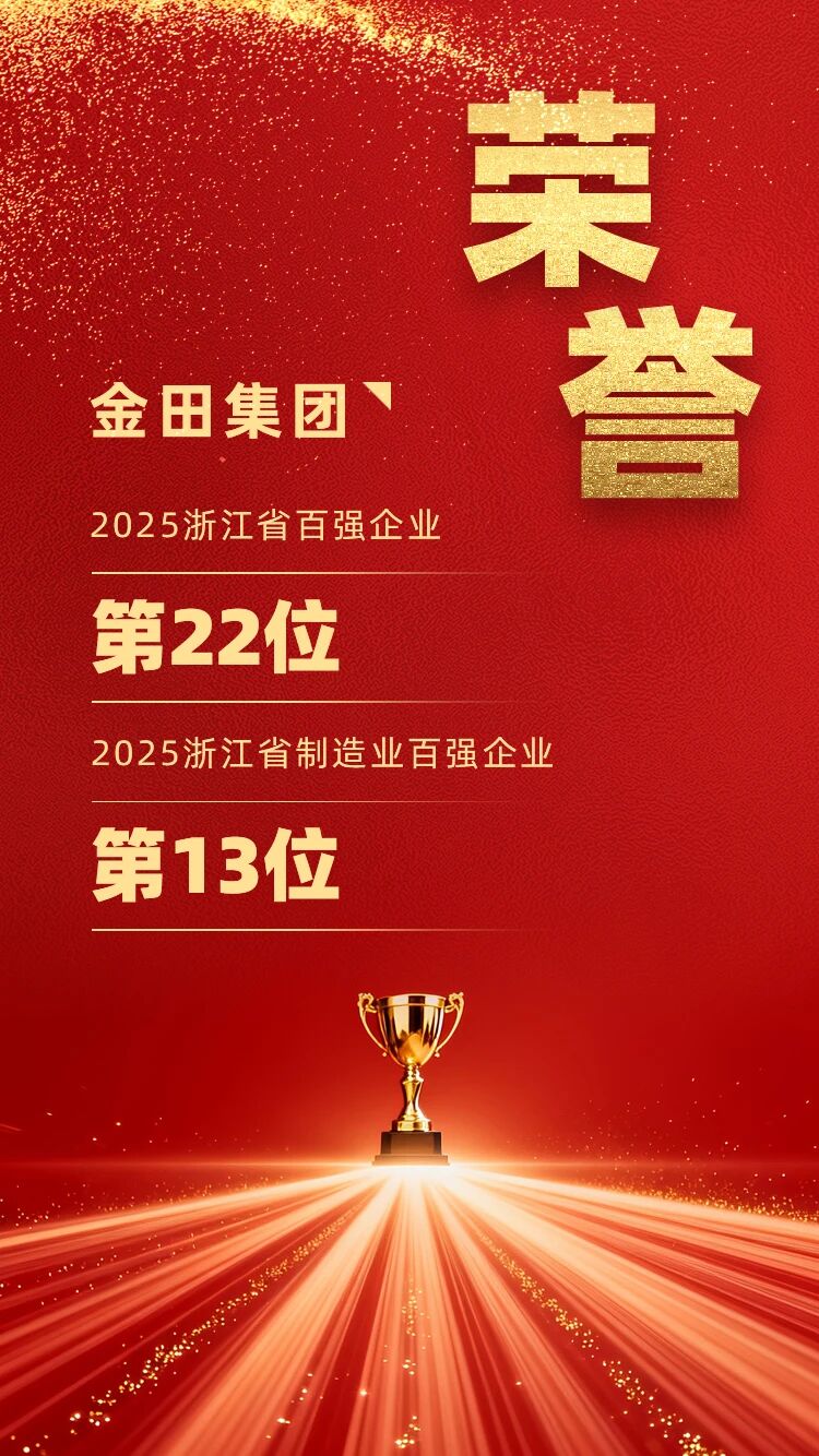 荣誉 | 金田集团入围2025省百强企业、省制造业百强企业榜单