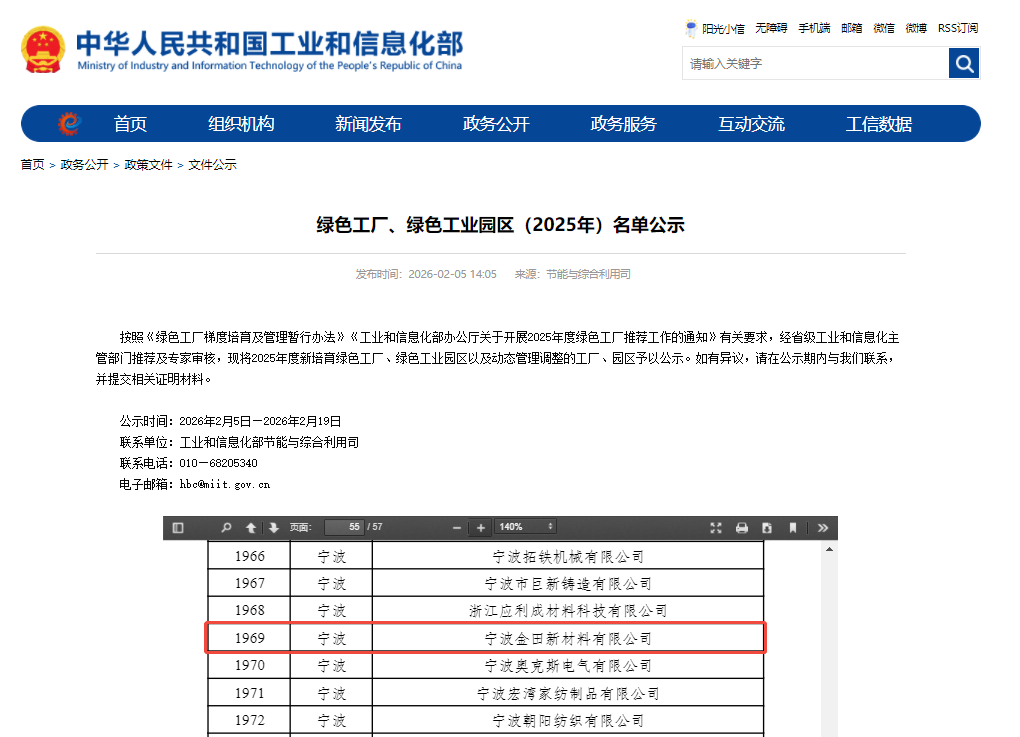 荣誉 | 宁波金田新材料获评国家级绿色工厂